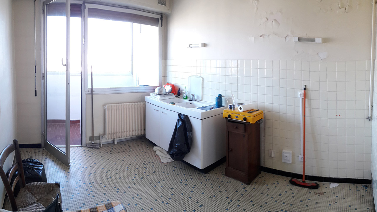 La suite parentale a été créée dans l’ancienne cuisine permettant d’utiliser la loggia afin de créer une salle d’eau avec douche à l’italienne ouverte sur la chambre.