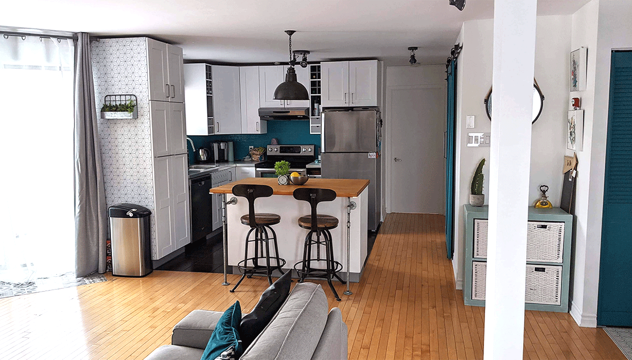 La nouvelle cuisine blanche apporte la clarté qui manquait dans cet espace.